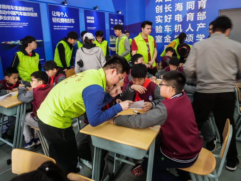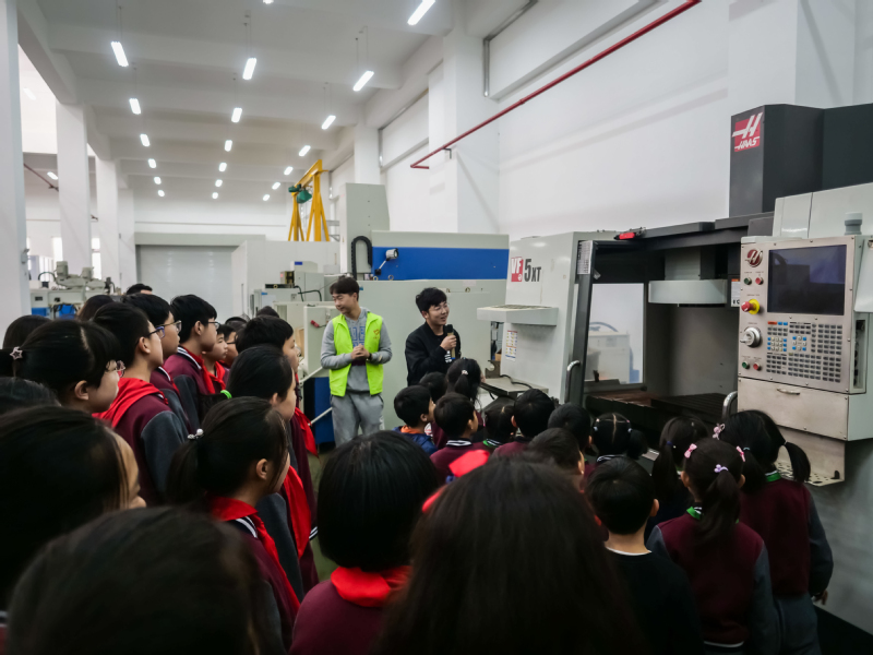 临外的师生首先参观了机械楼大厅,紧接着在我校志愿者带领下,观摩了传统先进制造业展区,小朋友们对传统工业制造技术很感兴趣,踊跃提问,志愿者一一解答。