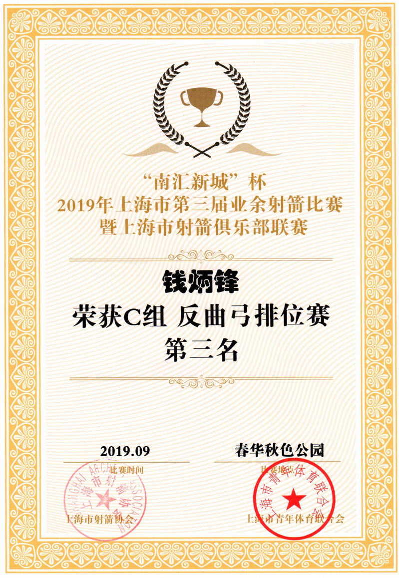 本次比赛由上海市体育局、上海市体育总会指导,上海市社会体育管理中心、浦东新区南汇新城镇人民政府主办,上海市射箭协会、上海市青年体育联合会技术支持。大赛设置了反曲弓、复合弓、传统弓、光弓四个类别比赛,吸引了来自上海的16家俱乐部227名射箭运动爱好者参加。我校钱炳锋老师今年首次参赛,获得C组成人反曲弓排位赛第三名并勇夺该项目比赛季军。