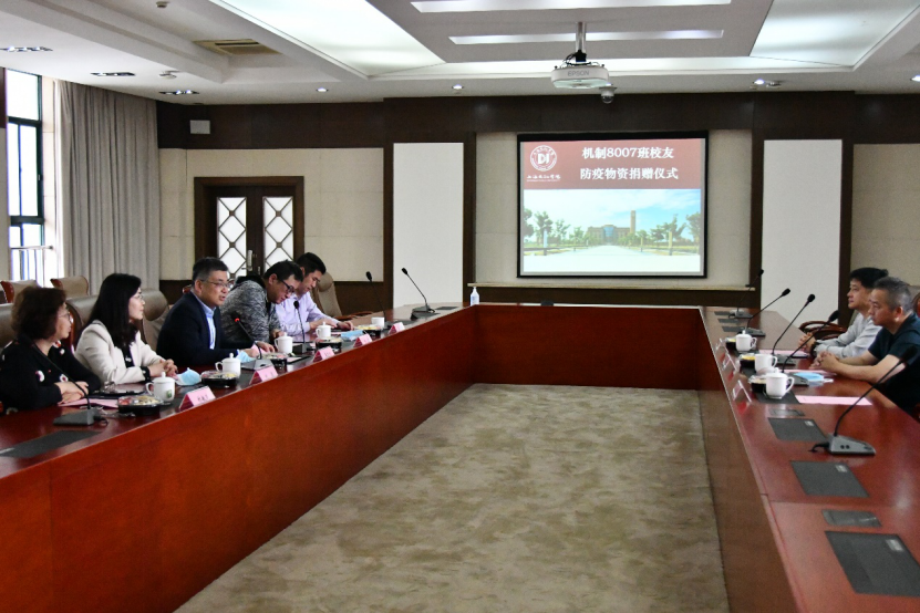 王志恒副校长向两位校友介绍了学校疫情防控方面的工作情况,自今年1月底疫情发生后,学校第一时间成立防控工作组,目前学校留宿的百余名学生平安健康,无一例感染发生,这些来之不易的成绩离不开广大校友的大力支持,在此代表母校全体师生员工向校友表示衷心的感谢。在聆听了杨永平校友的生动事迹后,王校长希望升欣公司能再接再厉为国家为社会的抗疫工作作出更大贡献。他也高兴地表示,电机学院办学多年历经艰辛,培养出了数以十万计的校友,他们活跃在各行各业,为社会做出了重要贡献,也得到了社会的广泛赞誉,为母校添了光增了彩。母校和校友永远是一家,他希望广大校友能继续与母校共生共享各类资源,继续共同助力母校的发展。