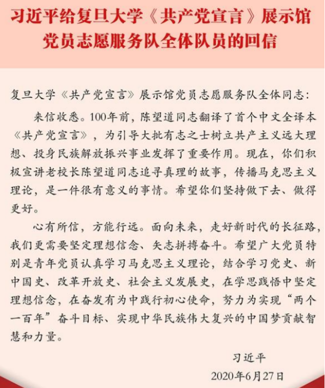 在回信中,习近平总书记寄语党员同志:“心有所信,方能远行”,号召广大党员特别是青年党员将对马克思主义的学习和“四史”学习相结合,为实现中华民族伟大复兴的中国梦贡献智慧和力量。