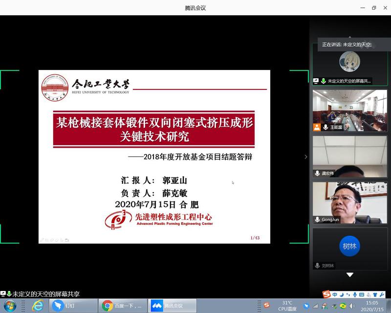 会上,辛教授介绍了专家组成员、立项背景及会议流程;验收专家组组长刘树林教授组织了各个项目的验收评审工作。先后进行了“阀体多向模锻成形工艺研究”等6项预研基金项目和“某枪械接套体锻件双向闭塞式挤压成形关键技术研究”等2项开放基金项目的验收答辩。待项目答辩结束后,刘树林教授组织专家组成员对各项目进行评审打分,给出验收是否通过的结论。项目验收评审结束后,辛教授进行了会议总结,并代表学科向与会专家表示感谢。