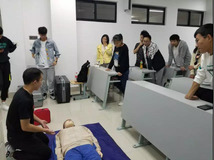 晚上六点,培训开始,培训部部长教大家如何确认现场情况,并进行心肺复苏,大家围成一圈认真学习,生动有趣的讲解让气氛开始活跃起来。