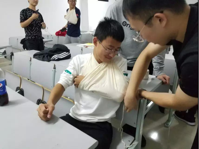 心肺复苏结束后,培训部副部长教大家如何进行手臂包扎及头部包扎,大家两人一组互相练习,在一片欢声笑语中,本次活动圆满结束。