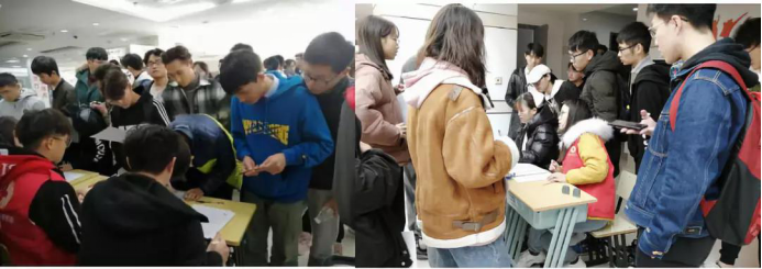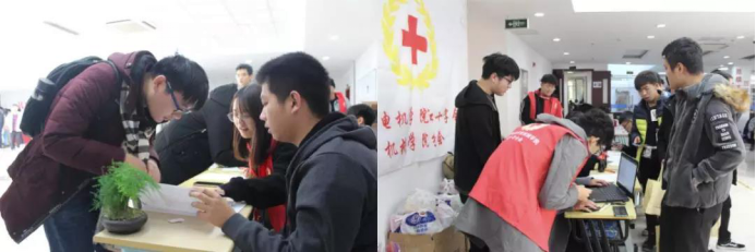 献血现场,志愿者们认真完成引导同学们填表、体检等工作。同学们也在志愿者和医护工作人员的指导下完成了整个献血流程。