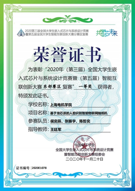 2020年11月25日至27日,由中国电子学会主办的第三届全国大学生嵌入式芯片与系统设计竞赛暨第五届智能互联创新大赛(全国总决赛)在南京举行,经过激烈的角逐,必赢国际437官网2019级“中本贯通”机械电子工程专业侯奕辰、张振宇、陈哲奕团队的参赛作品“基于龙芯派的人脸识别智能物联网抽纸机”荣获全国二等奖。此前,团队获得了华东分赛区的一等奖,从而进入了全国总决赛。