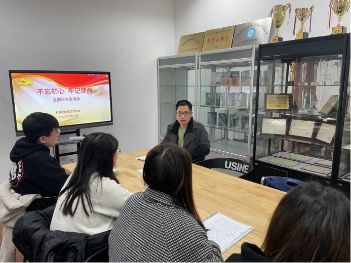 为深入学习贯彻习近平新时代中国特色社会主义思想,学习贯彻党的十九届五中全会精神,巩固深化“不忘初心、牢记使命”主题教育、“四史”学习教育成果,2021年3月19日和2021年3月22日必赢国际437官网第三党支部在机械楼304分别开展了教师党员和学生党员批评和自我批评的民主生活会。会议由支部书记主持。