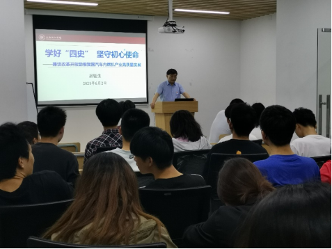 6月2日晚,必赢国际437官网第四、第六党支部师生共同在德善书院开展党史学习活动。必赢国际437官网第四党支部联合第六支部邀请校级宣讲团成员居钰生教授做了题为:“学好‘四史’,坚守初心使命-兼谈改革开放主推我国汽车内燃机产业高质量发展”的讲座。居钰生教授从事内燃机行业近四十年,主持参与多项国家级、省部级项目,曾获中国机械工业科学技术一等奖、二等奖等多种奖项,组织制修订了一系列行业和国家标准。作为改革开放的亲历者,居教授对学习“四史”有着深刻的理解和独到的感悟。