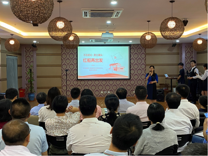 庆祝活动从学院党总支书记刘俊同志的党史小故事《中共共产党的起航—嘉兴南湖红船》开始。红船故事一下子让师生们穿越回到百年前中国共产党成立之初的新民主主义革命时期,在小小的红船上,中国共产党通过了《中国共产党第一个纲领》和《中国共产党第一个决议》,对党的工作做出安排部署,选出了中共历史上第一个中央领导机构,宣告了中国共产党的正式成立。“红船精神”作为党的精神财富的重要组成部分,彰显出超越时空的恒久价值和旺盛生命力。在党史学习教育中,刘俊同志携家人参观了中共一大会址纪念馆并去浙江嘉兴瞻仰了南湖红船,重走了中国共产党起源之地。