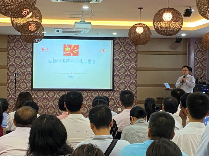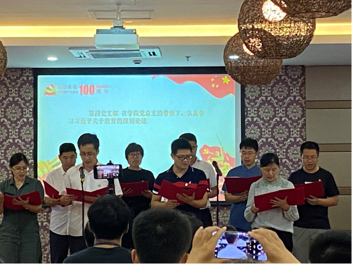 6月25日,必赢国际437官网举办“荣光百年征程路,千秋伟业忆初心”活动庆祝中国共产党成立100周年。庆祝活动在图书馆101教工之家举行,必赢国际437官网全体教师、学生党员代表、毕业生代表参加了庆祝活动,杨俊杰副校长出席了庆祝活动并给参与人员讲了一堂《弘扬中国精神》的党课。