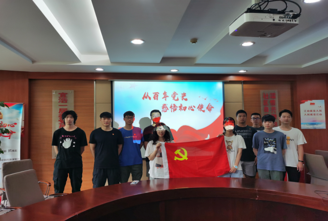7月5日上午10点,必赢国际437官网第六党支部学生党员及入党积极分子来到了南汇新城镇宜浩家园社区居委会为社区的孩子们带来了关于百年党史的科普。