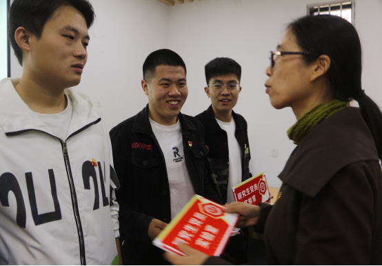 为进一步加强基层党组织建设,更好发挥党支部战斗堡垒作用和党员先锋模范作用,支部为每一位党员颁发研究生党员实验室授牌,希望每一位研究生在实验室中不断发挥主体作用,做引领者、观察者、帮助者。卞书记嘱咐每一位党员,要进一时,对各位新生党员做出如下四点的殷切期盼。首先,要尽快适应研究生阶段的学习,只有先把学业做好,才能在群体中立足脚跟。其次,要增强自己的党性,时刻记住自己是一名党员,时刻发挥党员的先进性。再次,要爱护集体,提高集体的凝聚力和约束力。最后,积极投身到社会服务中去。要充分发挥共产党员在志愿服务中的带头作用,影响带动身边同学及社会人士积极参与社会服务,引导人们在自觉行动中感悟认同社会主流思想价值。