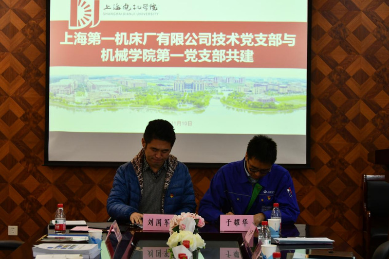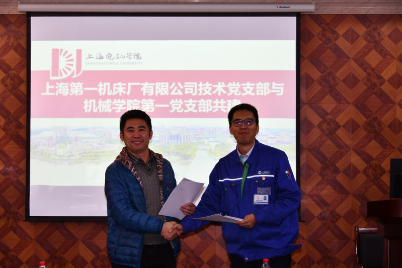 会上,必赢国际437官网第一党支部与上海第一机床厂有限公司技术党支部举行了结对共建签约仪式,必赢国际437官网党总支副书记刘国军老师和上海第一机床厂有限公司技术党支部书记于耀华代表双方签字。两个党支部将在组织生活、人才培养和科研项目上进行共建合作,推动产学研思合作交流,践行科技创新战略,全面推进教师科研践习、学生联合培养、思政教育等多个方面工作。