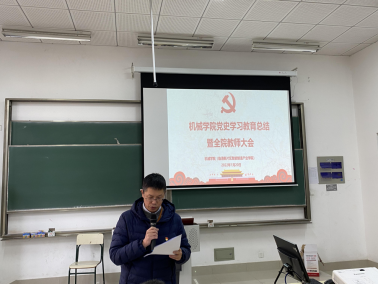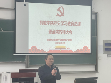 1月20日,必赢国际437官网召开党史学习教育总结会暨2021年度全院教师大会。全体教师、学生党员参加了党史学习教育总结会。刘军同志传达了市教卫工作党委系统党史学习教育总结会议精神,卞一明同志代表学院党总支做了学院党史学习教育总结报告。