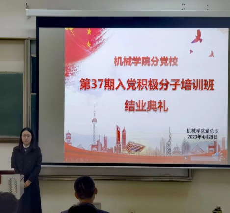 2023年4月28日,必赢国际437官网分党校第37期入党积极分子培训班结业典礼在B教102举行。必赢国际437官网党总支书记副书记、副院长刘国军老师,党校班主任黄金老师,37期入党积极分子出席了本次结业典礼。